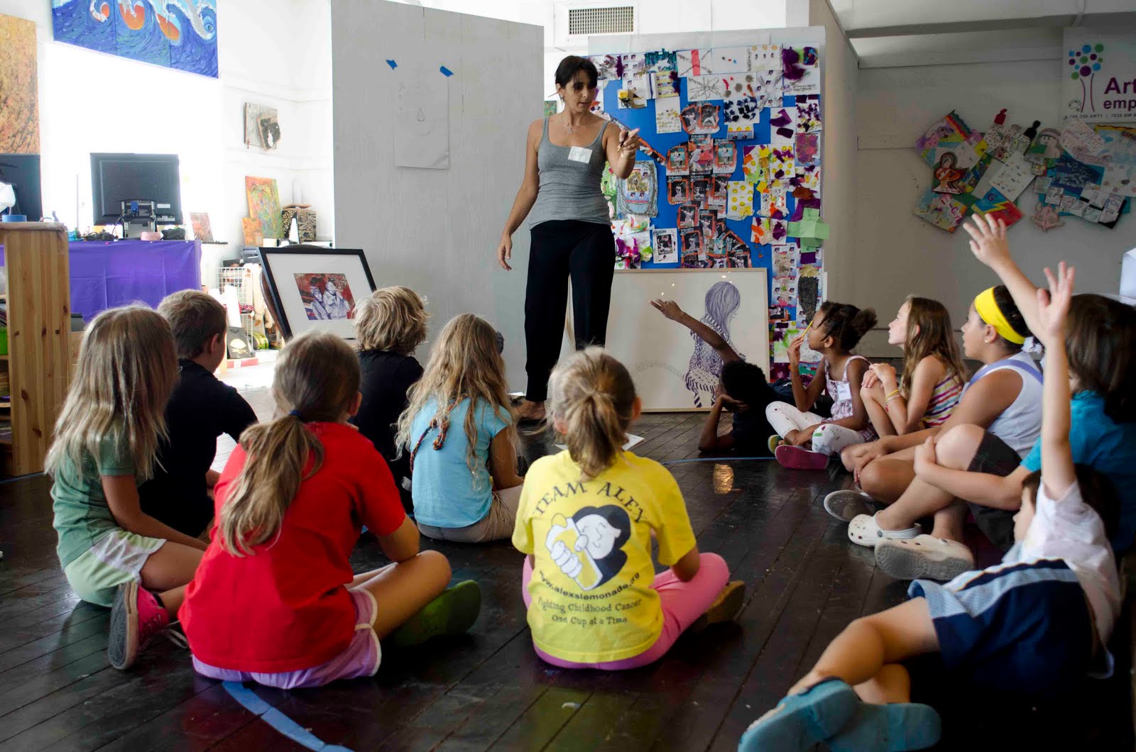 Our second art camp!!! Understanding Through Self Portrait; by artist and educator Leda Almar, was an absolute success in a step towards understanding the portrait! The children learned about drawing... how to use paint and color. Most important of all... we all learned how the portrait is an awesome vehicle to self expression.